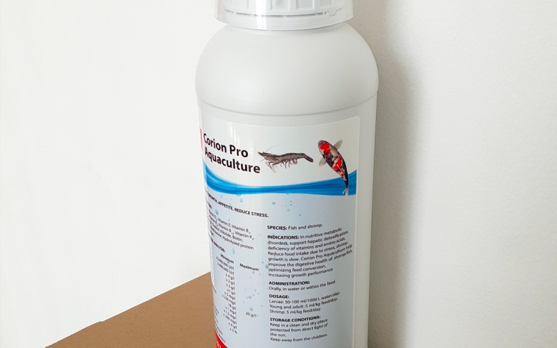 Corion Pro là vitamin tổng hợp giúp tăng cường sức đề kháng, thúc đẩy tăng trưởng và ổn định quá trình trao đổi chất cho tôm cá trong suốt quá trình nuôi.